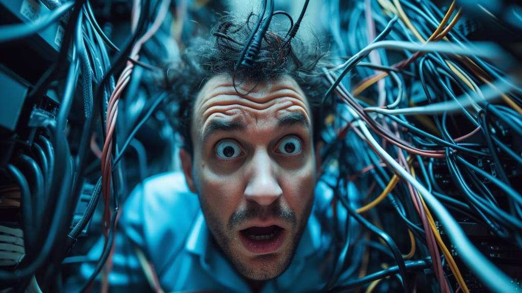 OO is simple on the surface, but it’s also extremely explicit, like hooking up wires in a giant telephone operator room, obscuring the inner function of the connected objects, and making it difficult to debug, if one object isn’t playing nicely.